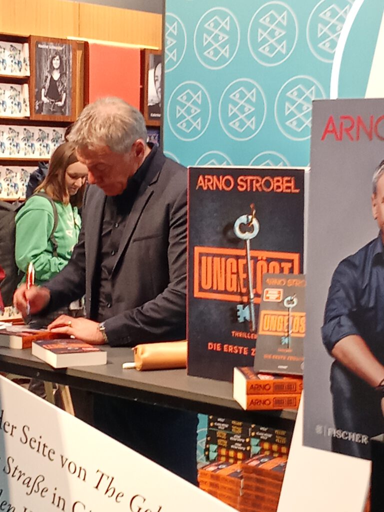 Mein erster Weg führte am Donnerstag in Halle 5, dort sind immer die meisten der unabhängigen Verlage zu finden, einige begrüßt und schon stand die erste Lesung an. Für mich natürlich eine Sachbuch-Diskussion „Das Semitische als Grundlage der europäischen Demokratie„, so sperrig wie vielschichtig, um direkt danach in die Programm-Vorstellung von Rowohlt zu gelangen, in der zwei Autor:innen aus ihren neuesten Werken lasen. Iryna Fingerova aus „Zugwind“ und Till Raether aus „Meeresdunkel„, einem Mallorca-Thriller.