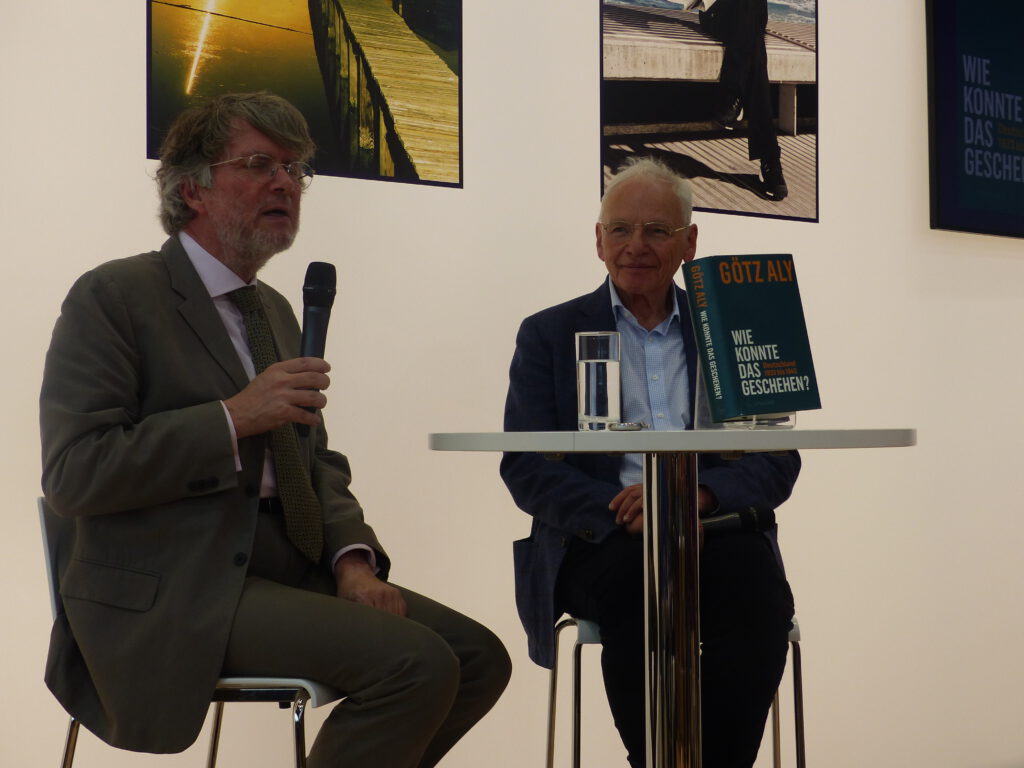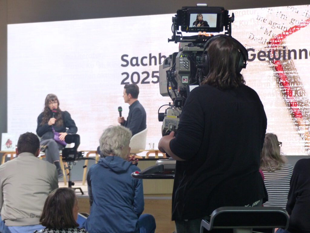 Zum ersten Mal habe ich die, wohl obligatorischen, Messecrepes probiert, nachdem ich Ulli Lust über ihre mit dem Deutschen Sachbuchpreis 2025 prämierte Graphic Novel „Die Frau als Mensch“ sprechen gehört habe, sowie Denis Scheck in einer Messeausgabe seiner Literatur-Sendung „Druckfrisch„, in der er einem Überblick über die seines erachtens derzeit lesenswerten Bücher gab. Ob das immer so hinhaut, lassen wir einmal dahingestellt sein. Für mich war ohnehin das nächste Gespräch am FAZ-Stand wichtiger, als der Historiker Götz Aly sein Werk „Wie konnte das geschehen? Deutschland 1933-1945“ vorgestellt hat. Ich konnte dieses mir im Anschluss signieren lassen. Auch habe ich am gleichen Tag die Autorin Isabel Bogdan und Laura De Weck getroffen, die in diesem Jahr die Jury-Vorsitzende für den Deutschen Buchpreis gewesen war.