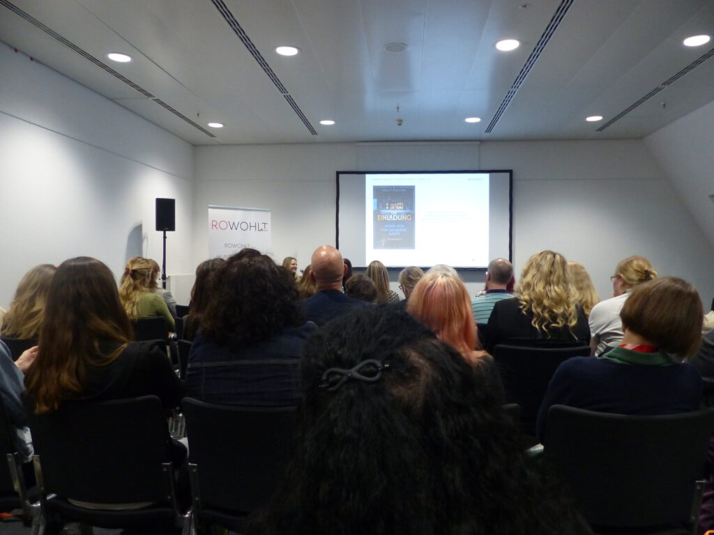 Mit entsprechend wenig Schlaf und etwas derangiert, was stark untertrieben ist, ging es am nächsten Morgen auf zum letzten Messetag. Am Freitag standen nur wenige Termine an, zum einem stellte Rowohlt sein kommendes Programm vor und Anna Prizkau („Frauen im Sanatorium„), sowie Kelly Mullen („Die Einladung„) ihre neuesten Werke, zum anderen gab es eine Art Werksgespräch über das Davor und Danach von „Für Polina“ mit Takis Würger bei Diogenes, die ebenfalls im Anschluss ihr anstehendes Programm vorstellten. Auch bei C.H. Beck habe ich mich über das kommende Programm ausgetauscht, sowie mich beim Topp Frech Verlag kurz vorstellen dürfen.